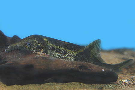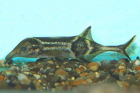 C. tamandua is quite a rare fish in the hobby, but is imported occasionally. It’s not a good beginner’s fish as it requires pristine soft, acidic water conditions, will generally not feed on standard foods and attains a very respectable adult size. It’s also sensitive to many aquarium medications. It can sometimes be found as a contaminant among imports of the much more common Elephant Fish, Gnathonemus petersii. Unlike this species, C. tamandua has both upper and lower jaws extended, giving the mouthparts a more beak-like appearance.